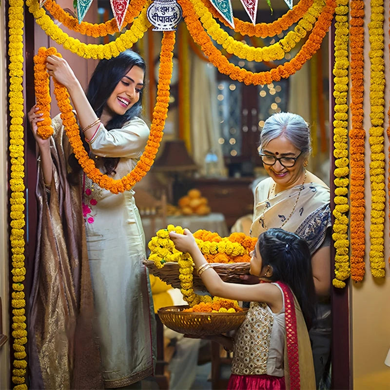 1.5m Marigold Flower Garland Plastic Artificial Flowers Diwali Traditional Festival