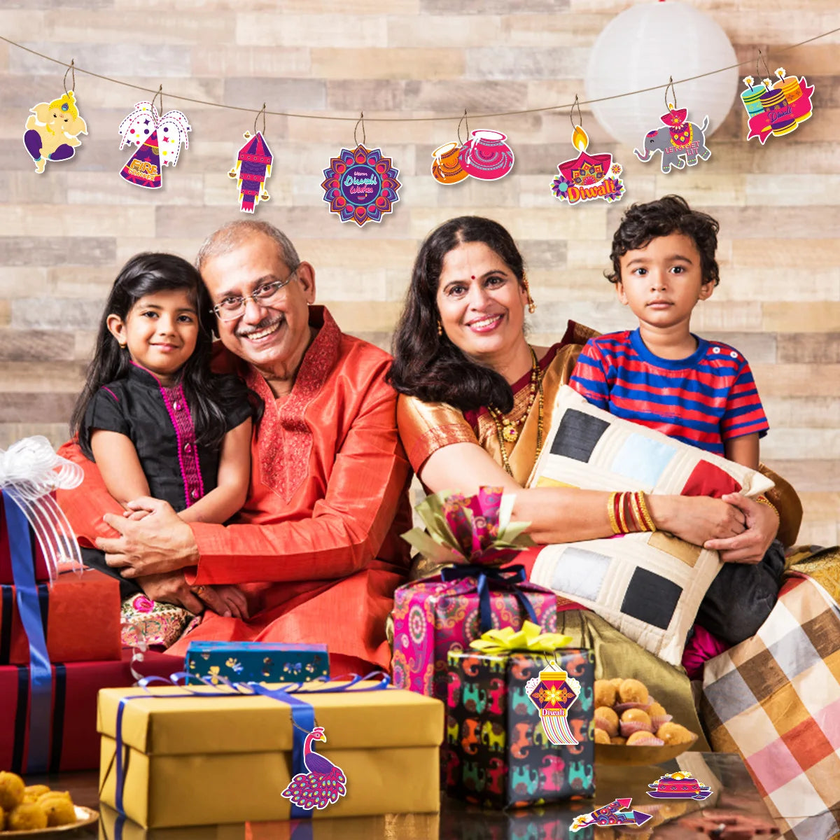 12Pcs/Bag Happy Diwali Theme Paper Tree Hangers Diwali Festival Party Decoration