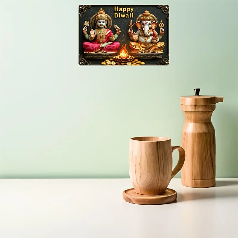 1pc Divine Aluminum Diwali Sign, 2D Lakshmi and Ganesha Figurine, Universal Holiday Decor, Ideal for Home, Bar, Table Decoration
