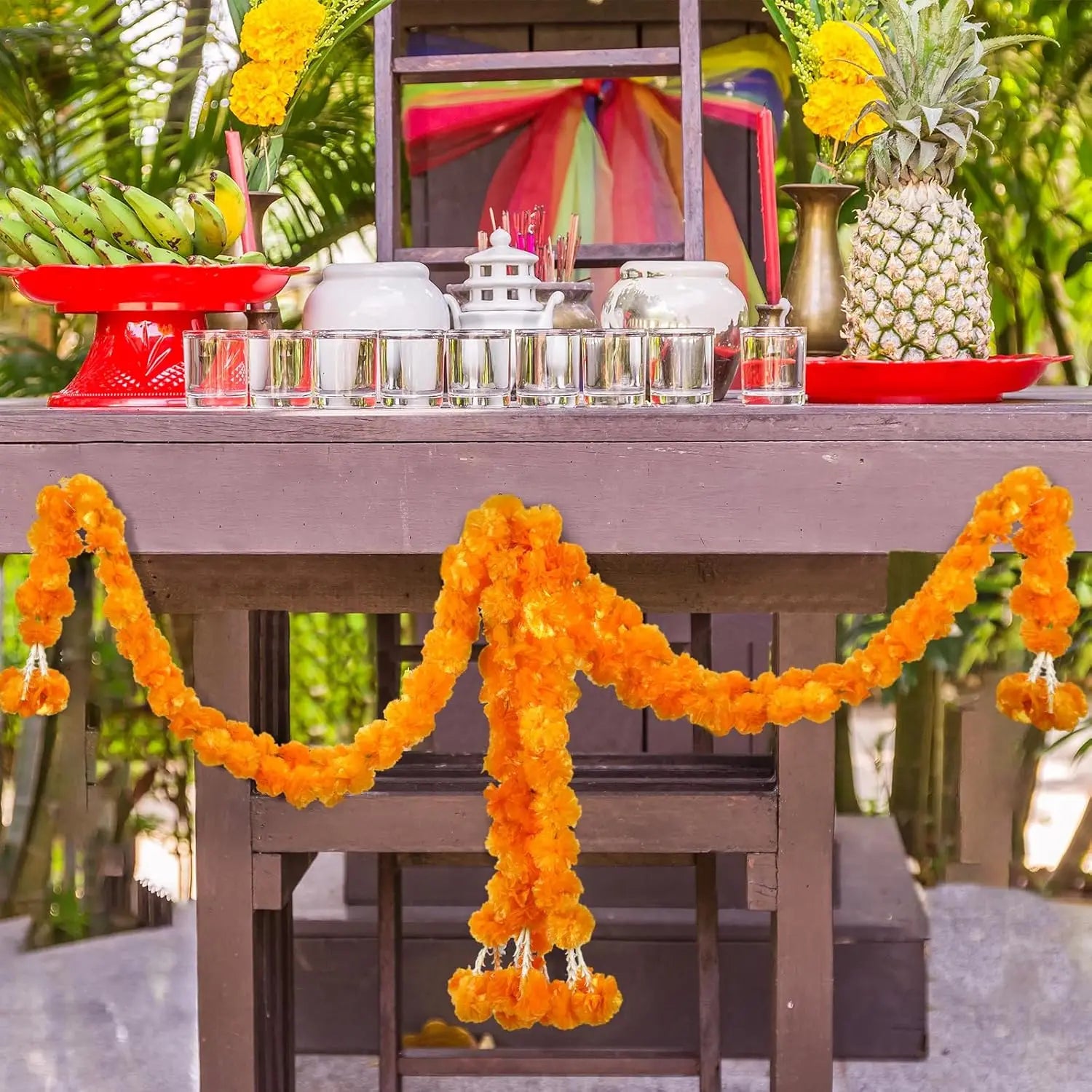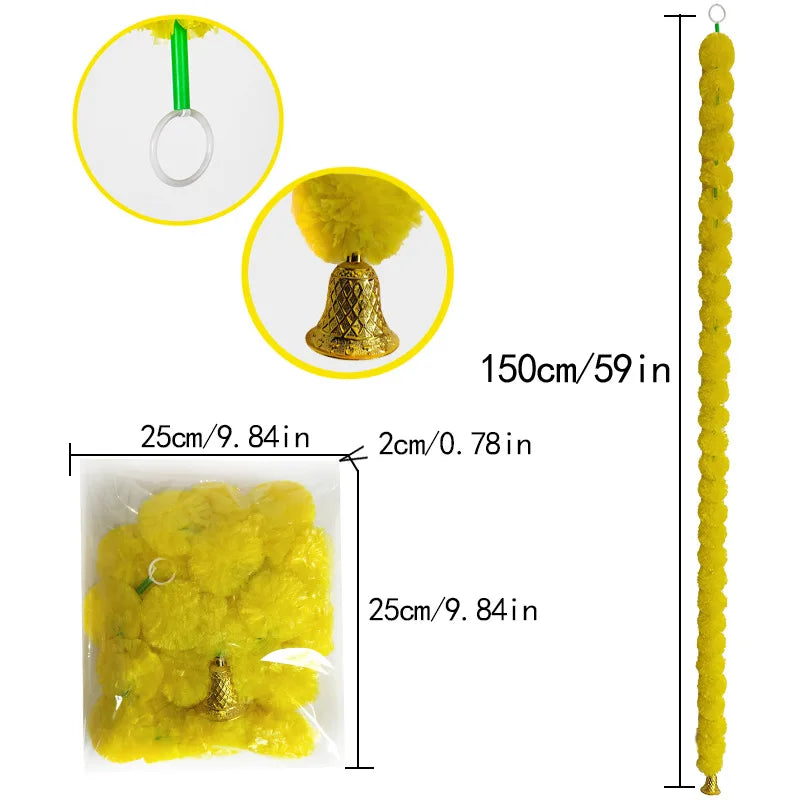 5-50pcs Marigold Flower Garlands Artificial Flower Garland for Indian Décor,Pooja, Diwali, Fiesta Day of The Dead, Mexican Party