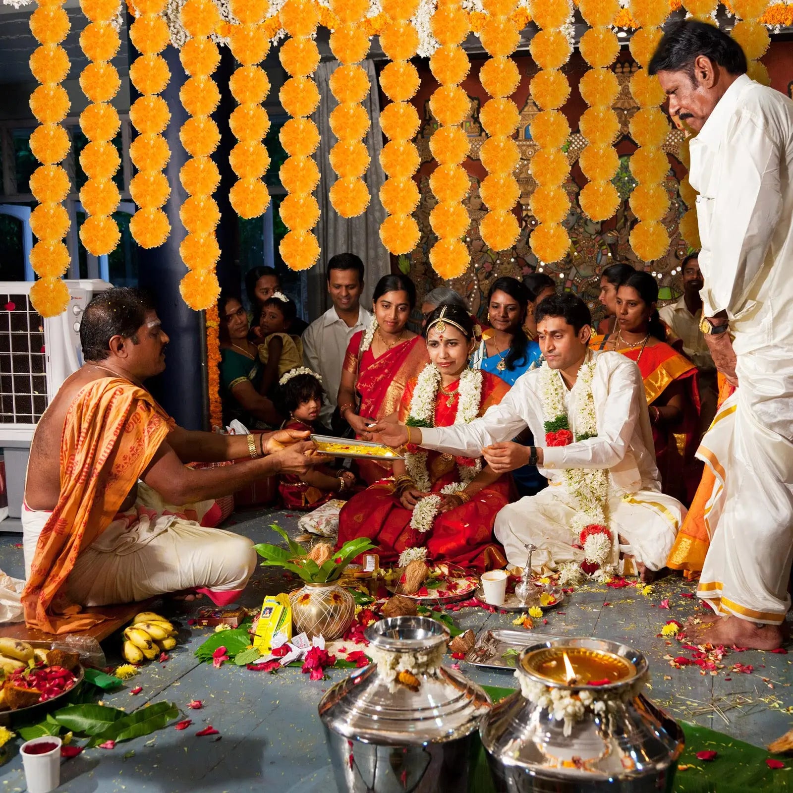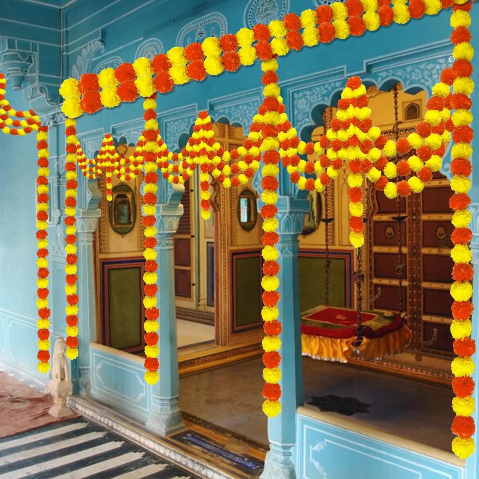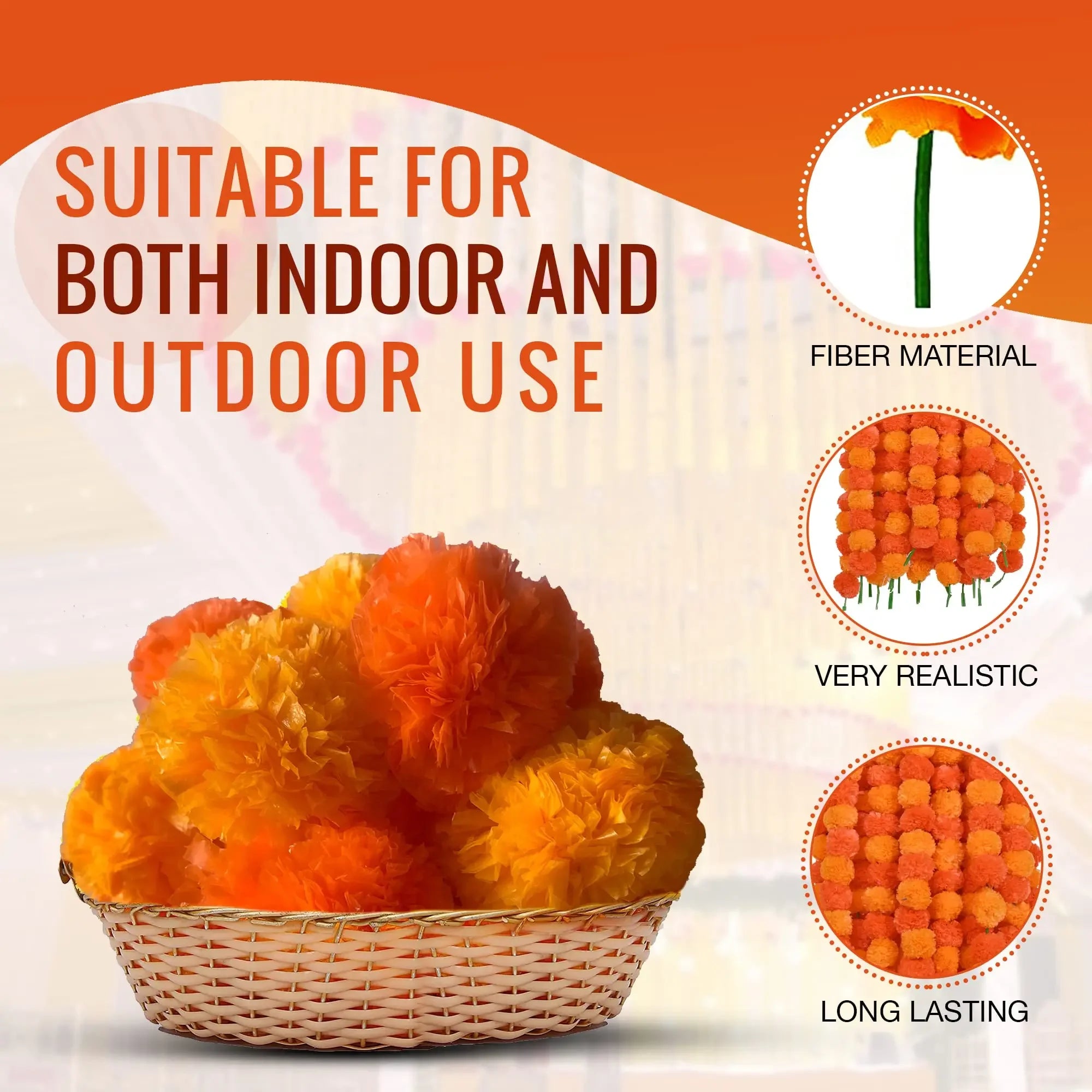 5-50pcs Marigold Garland For Decoration 5 Ft Artificial Flower Garland Mexican Fiesta Day of The Dead/Diwali Pooja Decor/Wedding