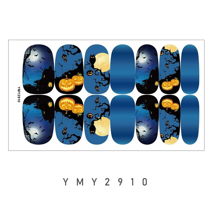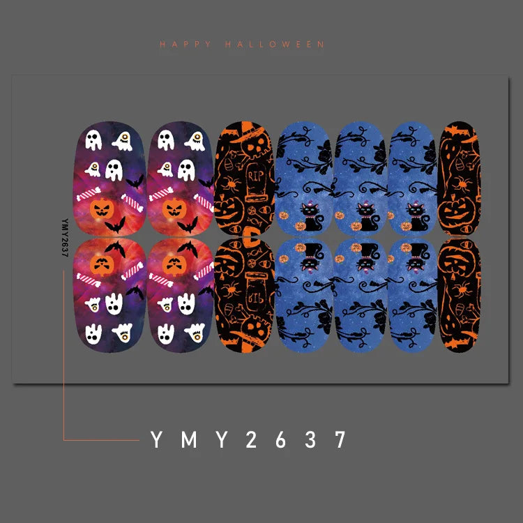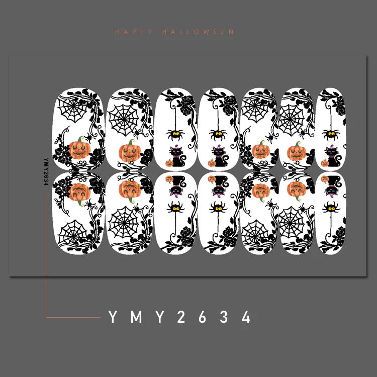 Baking Free Halloween Nail Stickers Full Sticker Fashion Nail Art Jewelry Pumpkin Ghost Wholesale Applique Nail Sticker
