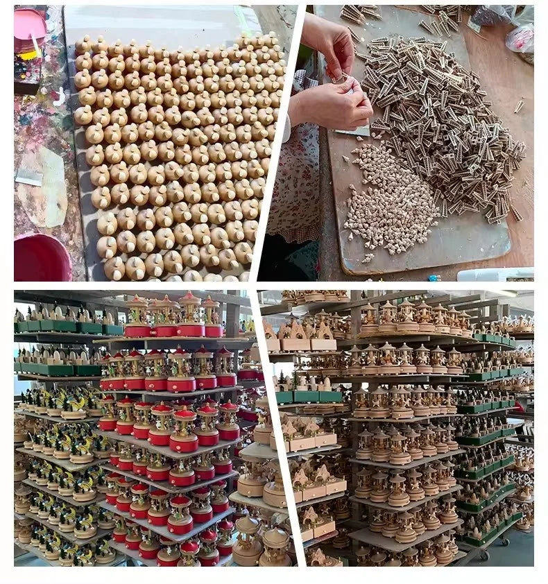 Christmas Gifts Wholesale Logo Engrave Mechanical Wind Up Clockwork Rotating Carousel Ballerina Music Box Wooden For Present