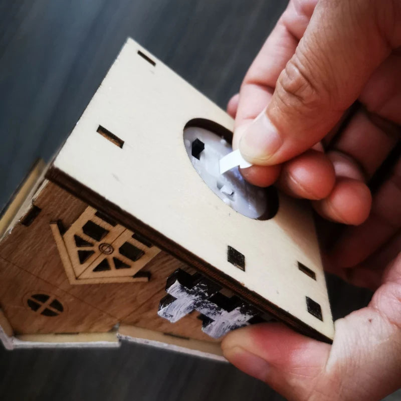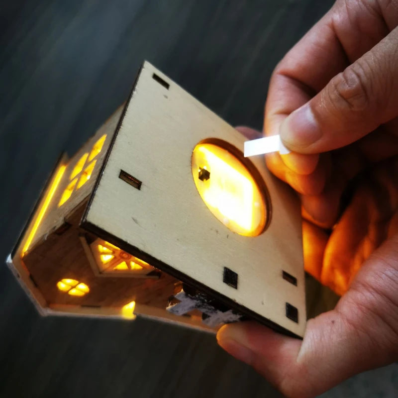 Christmas Home Decoration LED Luminous Wooden House Small House Xmas Tree Desktop Decoration Happy New Year Give Gifts Friends