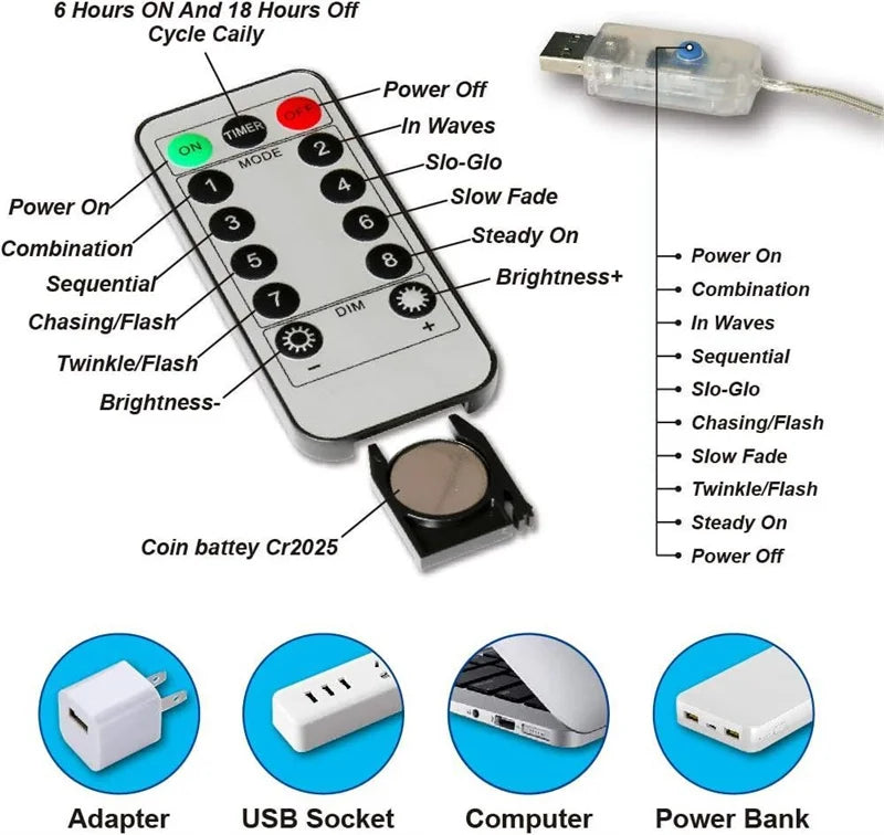 Diwali Lights LED Fairy String Curtain Lights 8 Mode Remote USB Festoon Christmas Decor For Home Holiday New Year Lamp