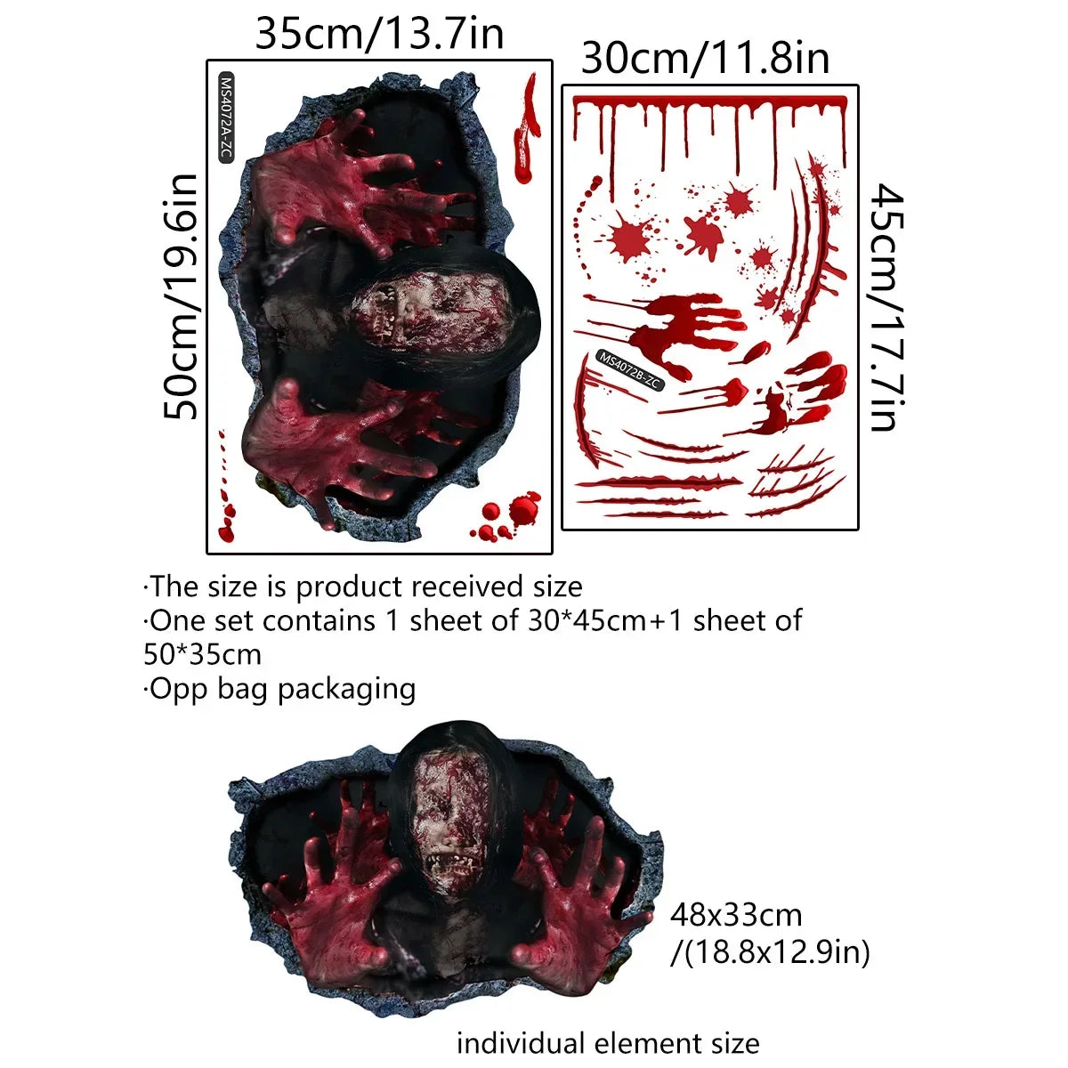 Halloween Toilet Lid Sticker DIY 3D Horrible Wall Decals For Home Bathroom Scream Bloody Decor Dark Halloween Party Decoration