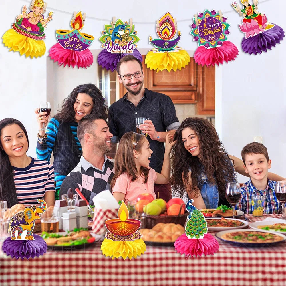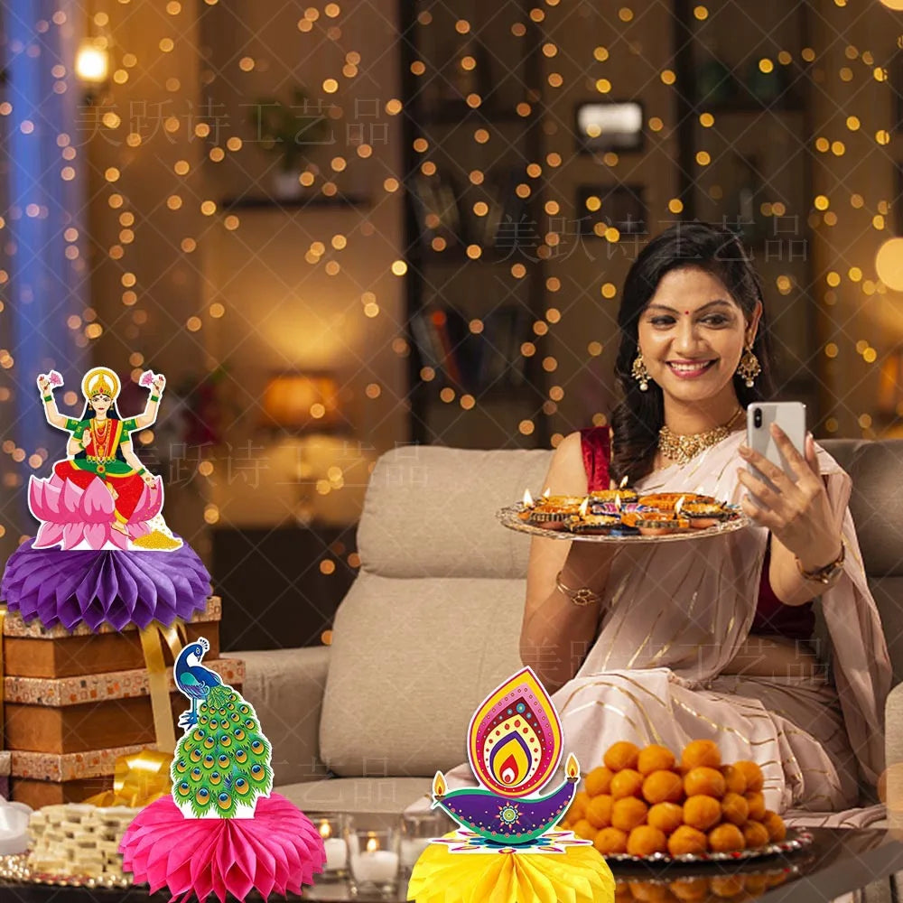 Happy Diwali Party Honey comb Table Decoration Diwali Peacock Ornaments Happy Festival of Lights Party Decor