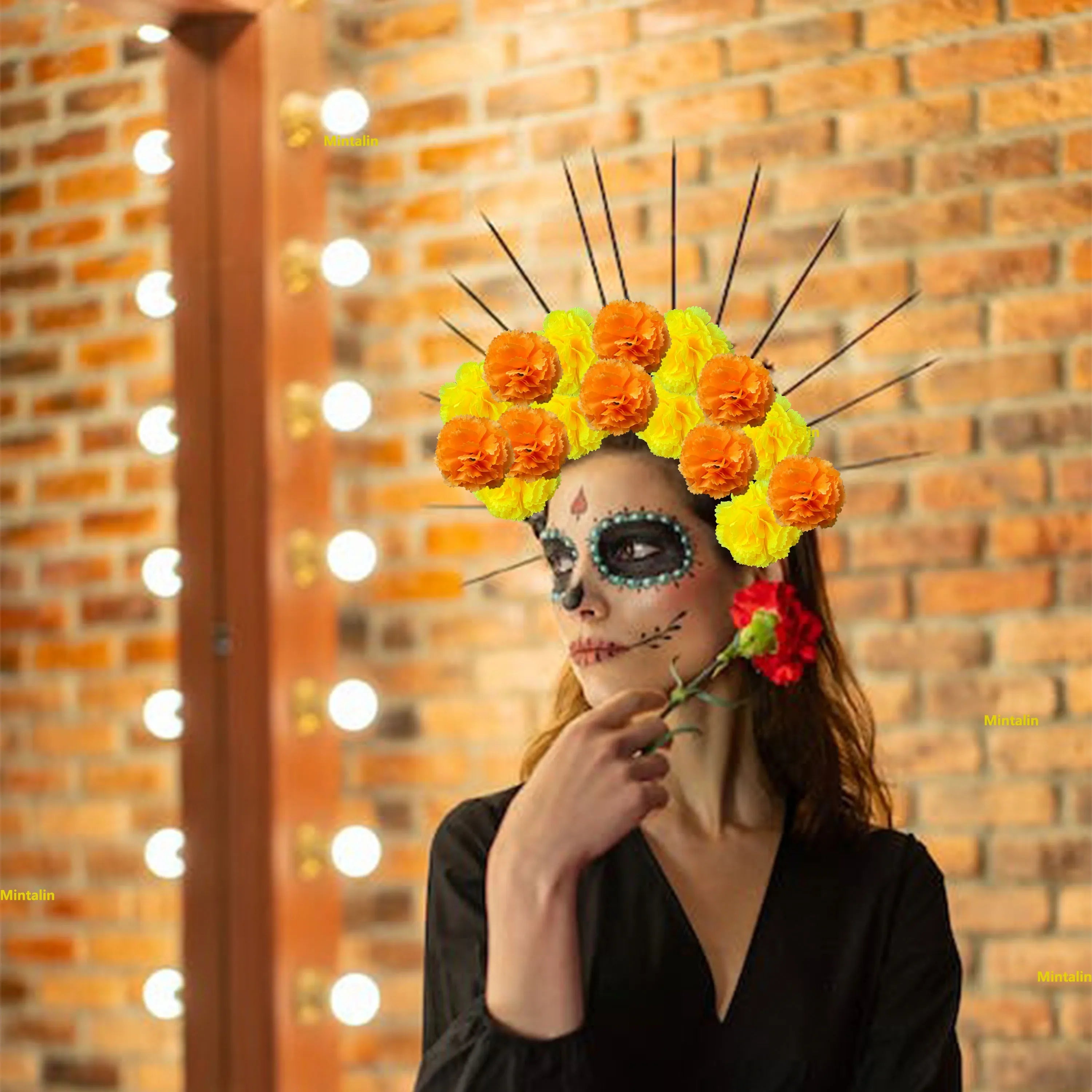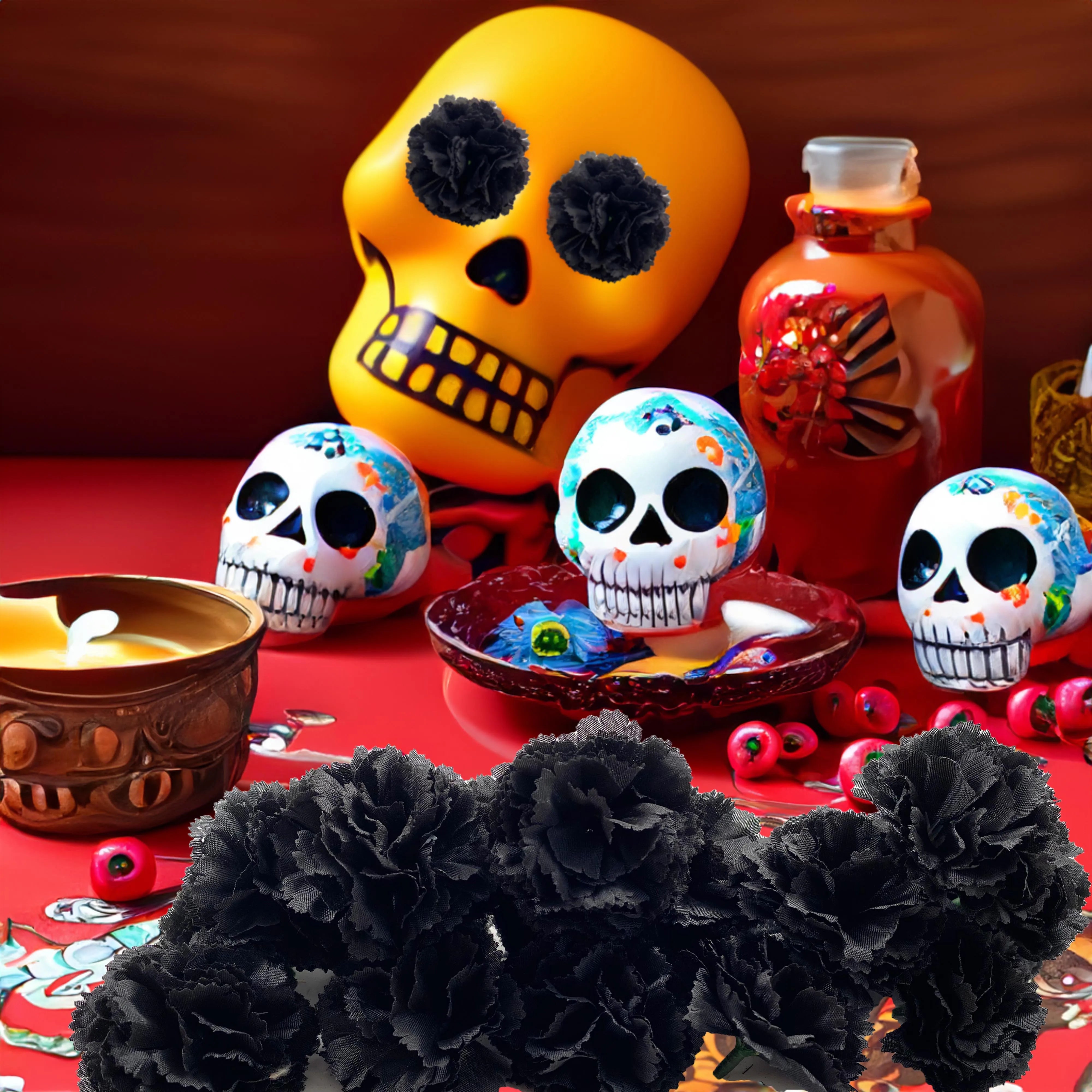 Marigold Flower Heads Bulk, Silk Mexican Flowers for Diwali Home Decor Wedding Party Decoration Halloween Decor for Indian Pooja