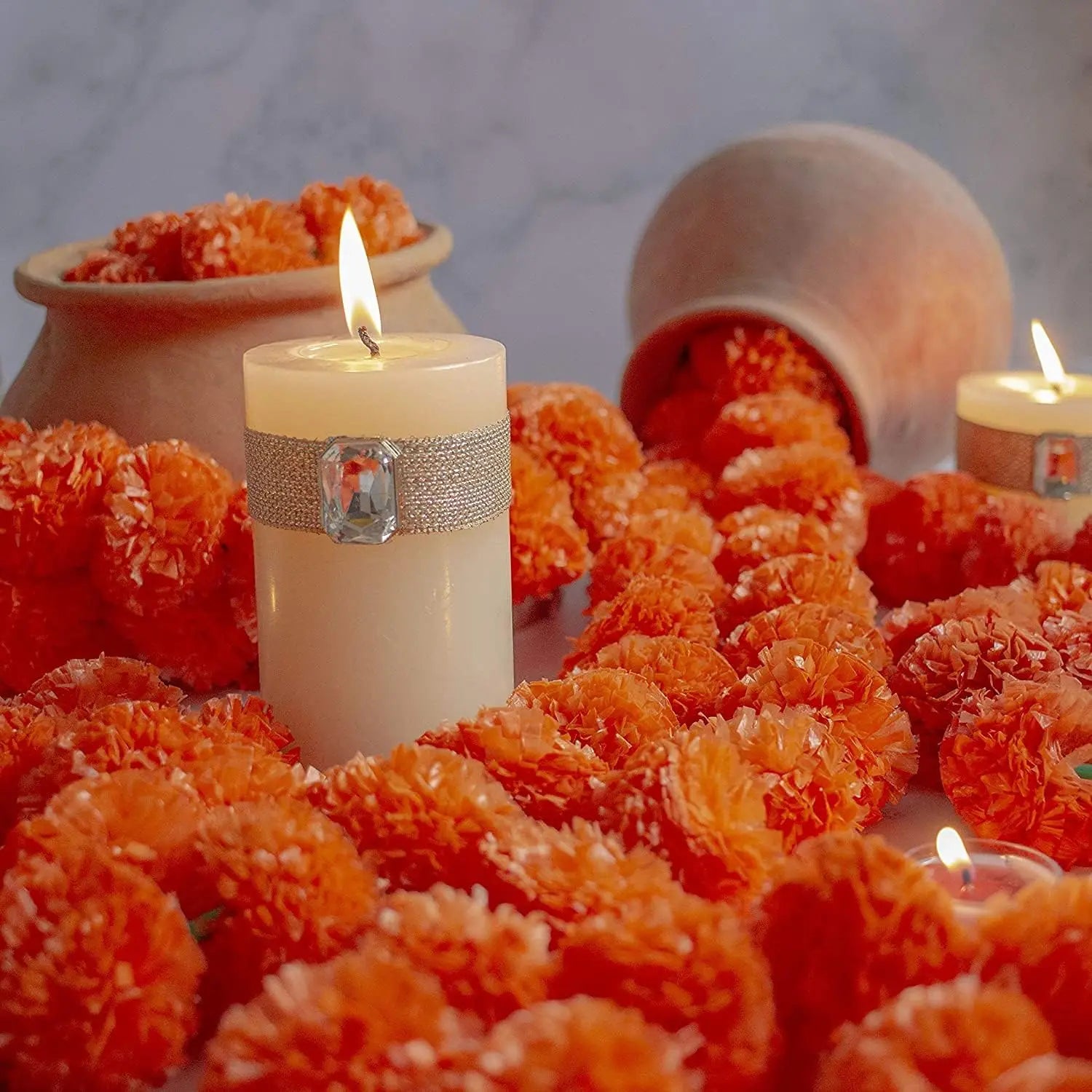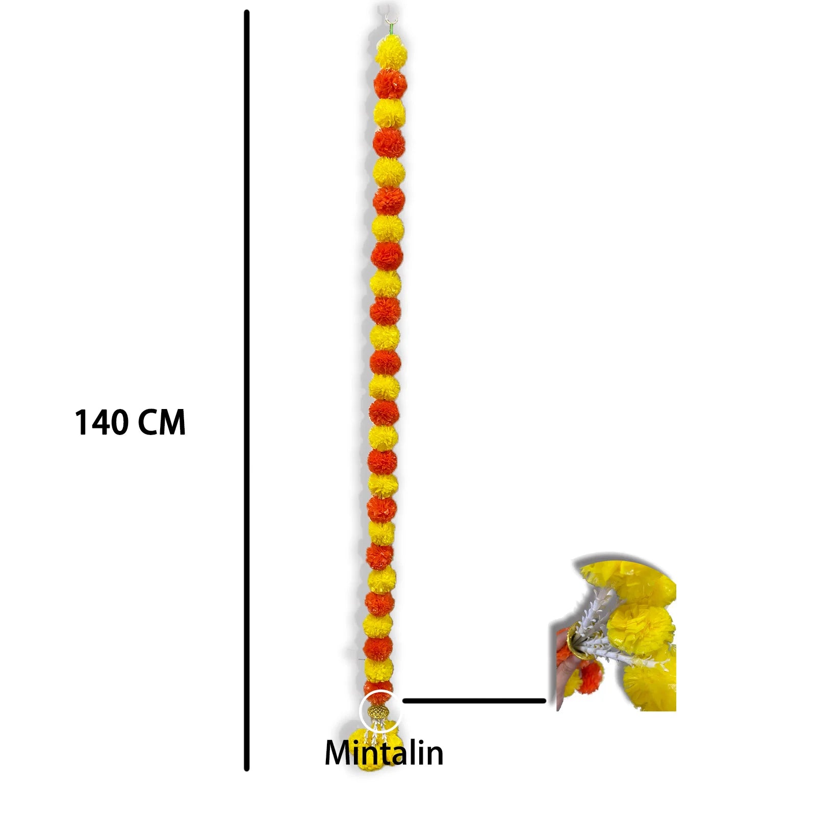 Marigold Garland for Decoration 10 Pcs of 5 feet (1,52 m)˜ Long Strands Artificial Marigold Flowers, Indian Décor for Pooja