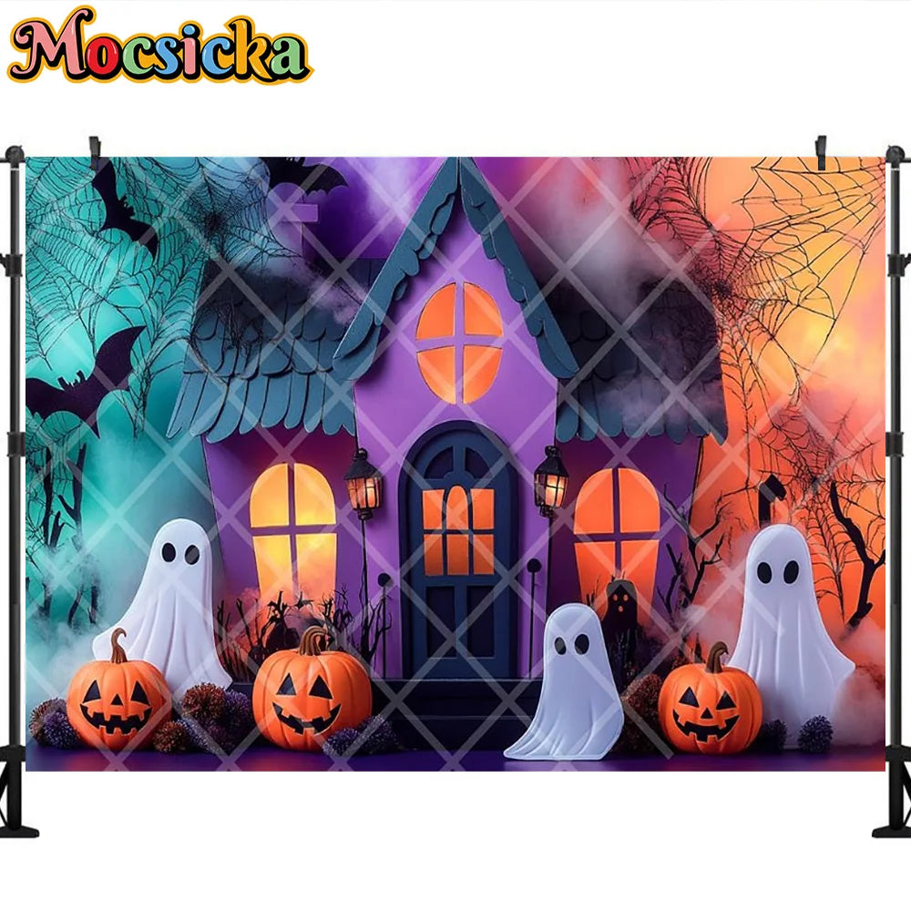 Mocsicka Photography Backdrop Halloween White Ghost Pumpkin Decoration Kids Holiday Party Supplies Backgrounds For Photographs