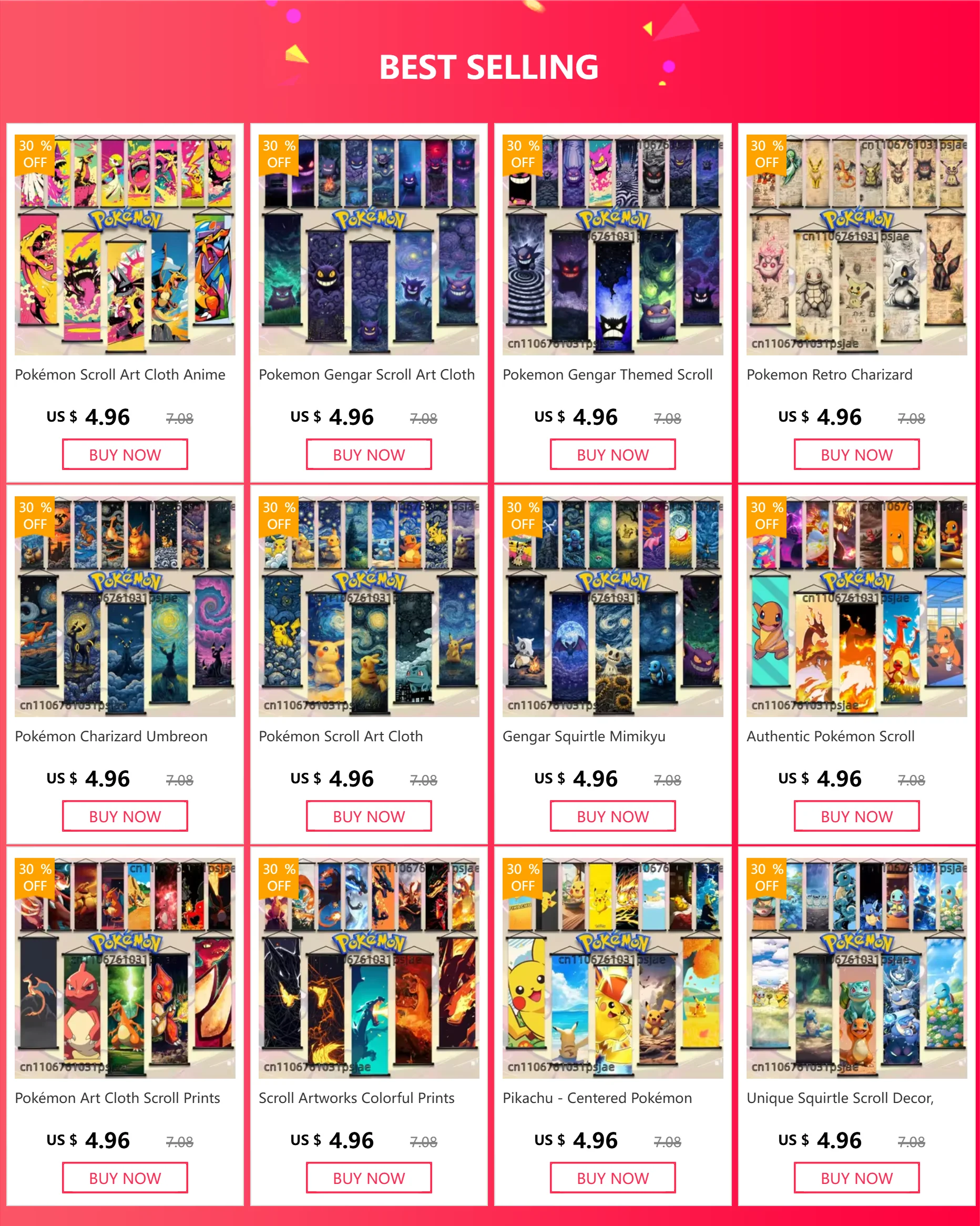 Pokemon Gengar Scroll Art Cloth Anime Characters Wall Hanging Poster Halloween Xmas Decor Fans Collection Home Gifts